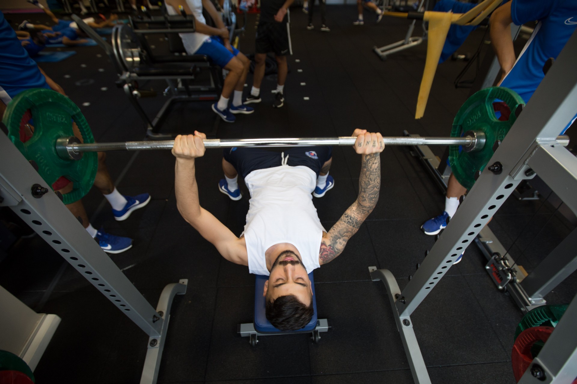 Antrenman takım halinde salonda yapılan ısınma hareketleri ve streching çalışması ile başladı. 8 istasyondan oluşan parkurda oyuncular üç tur üzerinden değişmeli olarak denge ve kuvvet çalışmalarını tamamladılar.
