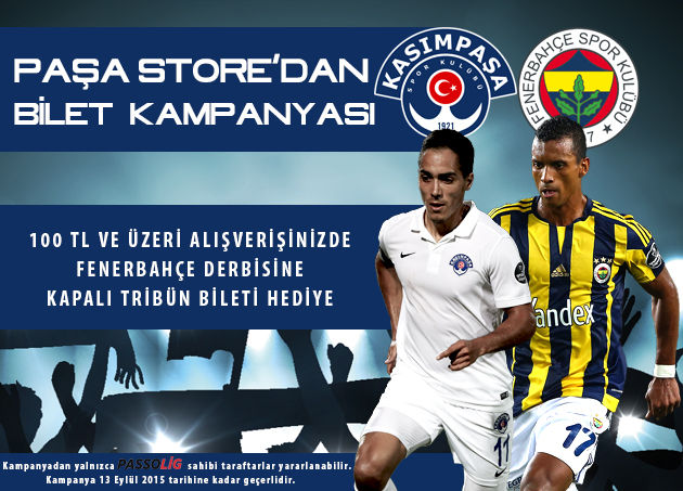 Paşa Store’dan 100 TL ve üzeri alışverişlerinizde Fenerbahçe maçına Kapalı Tribün bileti hediye..